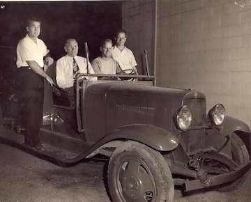Men from the Walnut Lake Fire Department and Early Fire Car, Left to right: Ray Hetcher, Claude Whitman, Ernest Jacobson and Clayton LaMotte. Photo Courtesy of Greater West Bloomfield Historical Society